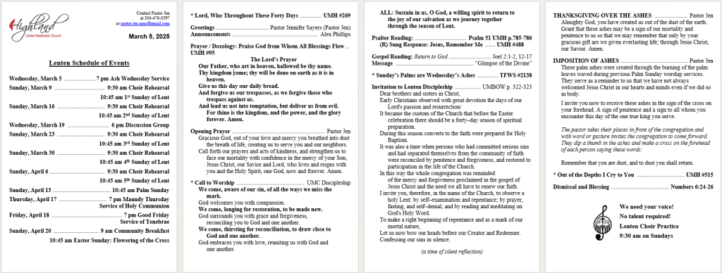 Wednesday, March 5 …………………… 7 pm Ash Wednesday Service
